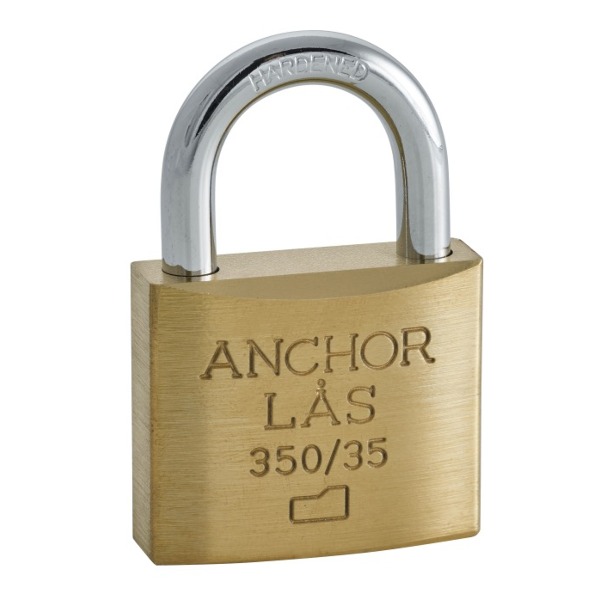 Unclassified padlocks made of brass with shackle in hardened steel. Suitable for locking wardrobes, tool boxes and the like. Cylinder is type pin cylinder. Comes with pop-up shackle. The key can be removed in the locked and unlocked position. Padlock 350-35 has four pins.